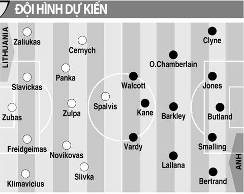 Đáng chú ý nhất vẫn là hàng tấn công. Wayne Rooney đang ngày một sa sút ở M.U. Thậm chí, thật khó tin là Gã Shrek sẽ tìm lại phong độ đỉnh cao. Bởi vậy, Hodgson cần có thêm phương án cho hàng tiền đạo, thay vì đặt niềm tin vào một ngôi sao sắp hết thời như Rooney. Theo đó, nhiều khả năng bộ ba Jamie Vardy, Harry Kane, Theo Walcott sẽ được đá chính trước Lithuania. Một Lithuania đã thủng lưới tới 15 bàn/9 trận ở bảng E sẽ là dịp tốt để Tam sư mài sắc thêm móng vuốt. Ở hàng thủ, việc Cahill không thi đấu, John Stones vắng mặt nhiều khả năng sẽ trao cơ hội đá chính cho Phil Jones hoặc Phil Jagielka.
