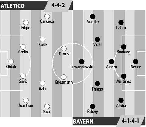 Có nghĩa rằng, khi được chơi trên sân nhà và tại Champoins League, Atletico vẫn là một đối thủ quá khó đánh bại, trước bất cứ đối thủ nào và trong bất cứ thời điểm nào, dù gặp khó khăn đến đâu. Bayern vẫn rất hùng mạnh, từ ở những năm trước dưới thời HLV Pep Guardiola cũng như khi được dẫn dắt bởi HLV Carlo Ancelotti mùa này. Họ toàn thắng cả 8 trận mùa này trên mọi mặt trận. Bayern còn đến Vicente Calderon với khát vọng báo thù mạnh mẽ cho thất bại cay đắng trước Atletico tại bán kết Champions League mùa năm ngoái.