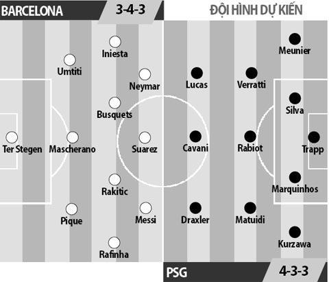 PSG còn phải hành quân tới Nou Camp với những mối lo không nhỏ về lực lượng. Thiago Motta và đặc biệt ngôi sao sáng nhất ở lượt đi Di Maria vẫn đang đau nhẹ. Trong khi đó, một trụ cột khác Adrien Rabiot cũng chỉ vừa kịp hồi phục sau bệnh cúm.