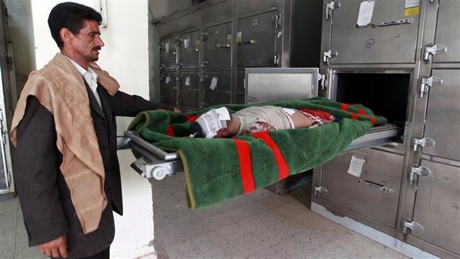 Một nạn nhân Yemen thiệt mạng trong cuộc không kích của Saudi Arabia vào làng Bani Matar, phía tây thủ đô Sanaa hôm 4-4-2015 – Ảnh: AFP