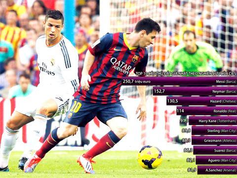 Dựa trên sự kết hợp của rất nhiều yếu tố như tuổi tác, thời hạn hợp đồng, vị trí thi đấu, thành tích từ năm 2010 (đặc biệt trong năm gần nhất 2015),… Trung tâm nghiên cứu thể thao quốc tế (CIES) vừa công bố BXH 100 cầu thủ đắt giá nhất thế giới tháng 1/2016. Theo đó, đáng chú ý nhất, Cristiano Ronaldo đã rơi xuống vị trí thứ 4, sau Messi, Neymar và Hazard. Nếu như năm 2015, Messi giành được 5/6 danh hiệu có thể cùng Barcelona, thì Ronaldo lại trắng tay và vừa trải qua những ngày tháng vô cùng thất vọng với Real. Bên cạnh đó, so với Messi trẻ hơn tới 2 tuổi, thì việc tiền đạo người Bồ Đào Nha rớt giá cũng là điều khó tránh khỏi.