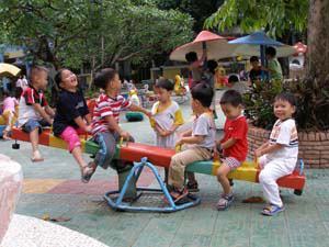 Trường mầm non phải có diện tích khuôn viên đảm bảo theo quy định: sân chơi ngoài trời được lát gạch, trồng thảm cỏ… Ảnh: H.Triều