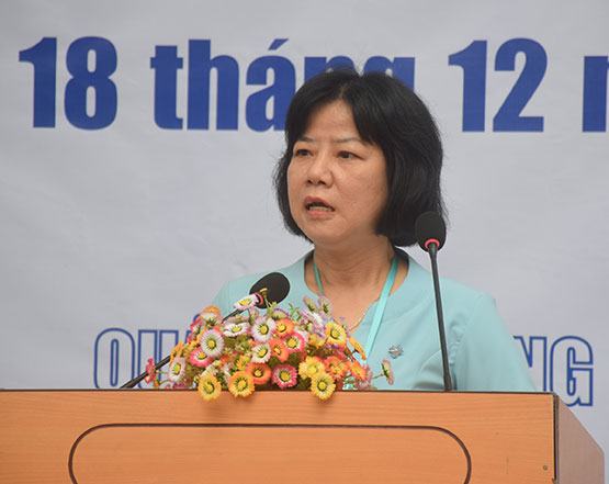 Bà Phạm Quang Trang Thủy – Hiệu trưởng Trường TC nghề Kỹ thuật Công nghệ Hùng Vương, Chủ tịch Hội đồng thi số 3 phát biểu tại lễ khai mạc
