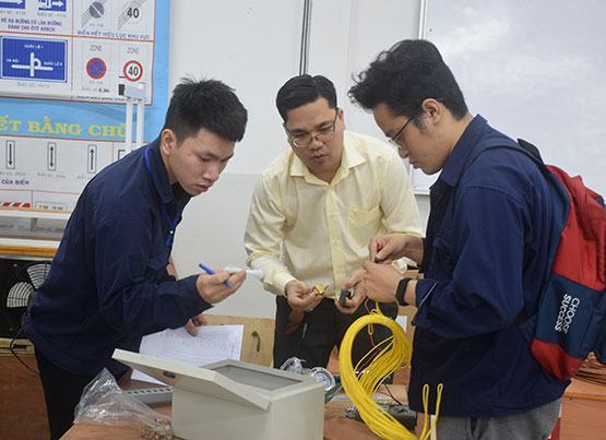 Thí sinh thi nghề điện lạnh tại hội đồng thi số 3