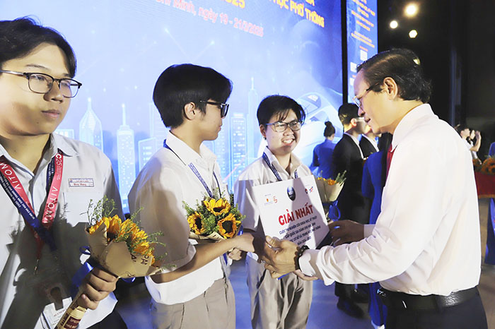Chiều 21-3, tại Trường ĐH Tôn Đức Thắng, Bộ GD-ĐT đã tổ chức lễ bế mạc Cuộc thi Khoa học kỹ thuật dành cho học sinh trung học cấp quốc gia năm học 2024-2025. Trong 12 đề tài đạt giải nhất, TP.HCM có 1 giải đến từ nhóm dự án của học sinh Trường THPT chuyên Lê Hồng Phong.