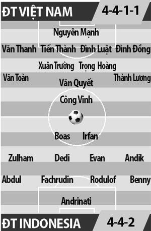 Xuân Trường đã chơi rất nổi bật khi đối đầu với ĐT CHDCND Triều Tiên, nên cuộc đối đầu với Indonesia là thêm một cơ hội để tiền vệ này chứng tỏ, anh xứng đáng chiếm một suất đá chính trong đội hình của ĐT Việt Nam. Khi người đồng đội đầy ăn ý Tuấn Anh ngồi ngoài cũng là dịp để Xuân Trường khẳng định, anh không hề phụ thuộc vào bất cứ đồng đội nào mà vẫn chơi tốt. Trong cách bố trí 1 tiền đạo cắm và 1 tiền đạo lùi, Văn Quyết và Công Vinh được coi là giải pháp mà HLV Hữu Thắng ưu tiên hàng đầu, nên sẽ rất hợp lý nếu bộ đôi này được tung ra sân trước ĐT Indonesia.