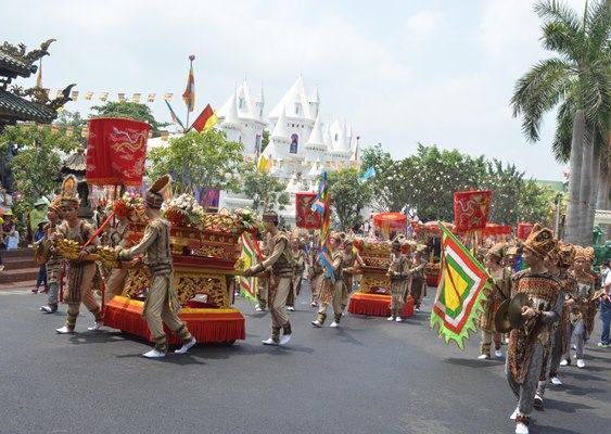 Tham gia rước kiệu là 41 đoàn dân tộc anh em và hình tượng các vị anh hùng dân tộc theo chiều dài lịch sử đất nước.