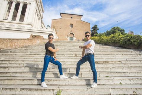 Quốc Cơ-Quốc Nghiệp tập luyện tại Ý. Ảnh: CTV
