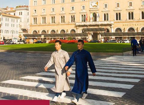 Thăm danh thắng và chụp ảnh cùng người hâm mộ tại Ý. Ảnh: Việt Khoa