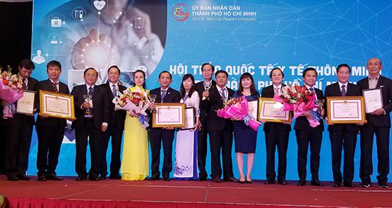 Theo đó, 20 sản phẩm đạt giải thưởng Y tế thông minh bao gồm 8 giải Ba, 8 giải Nhì và 4 giải Nhất. Cụ thể, 8 giải Ba gồm: Hệ thống nhắc kê đơn cho bác sĩ Nhi khoa của BV Nhi Đồng 1; Ứng dụng các thuật toán tiên tiến giúp xạ trị trúng đích của BV Ung Bướu TP.HCM; Giải pháp điều hành thông minh mạng lưới cấp cứu ngoài bệnh viện của Trung tâm Cấp cứu 115; Phần mềm giám sát tuân thủ an toàn người bệnh trong phẫu thuật của BV Nhi Đồng 1; Ứng dụng công nghệ làm tăng thêm giá trị của hệ thống xét nghiệm của BV Nhi Đồng Thành Phố; Phần mềm để người bệnh cùng kiểm tra thông tin trước mổ của BV Mỹ Đức Phú Nhuận; Thân thiện hóa giọng đọc của máy khi gọi tên người bệnh của BV Quận 1; Ứng dụng camera thông minh giám sát rửa tay của BV Truyền máu Huyết học.