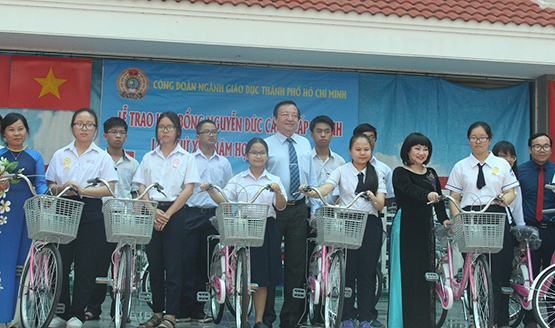 Ngoài học bổng, 20 học sinh có hoàn cảnh đặc biệt khó khăn cũng được hỗ trợ xe đạp do Trường THCS- THPT Hồng Hà (TP.HCM) trao tặng.