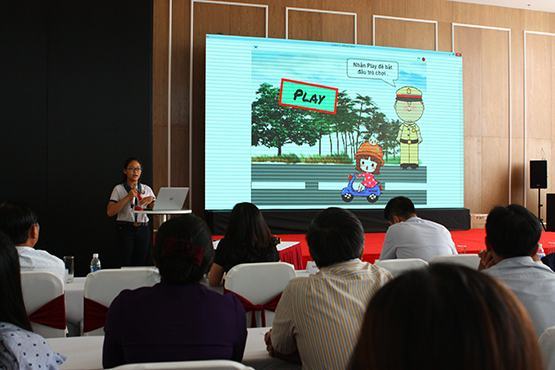 | Học sinh Trần Tuệ Huy (lớp 9/3 trường THCS Hiếu Phụng, Vĩnh Long) trình bày về sản phẩm sáng tạo Scratch |
