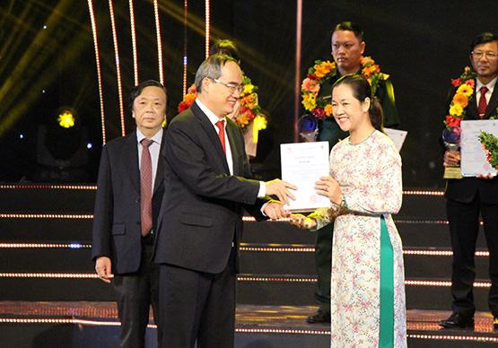 Bí thư Thành ủy TP.HCM Nguyễn Thiện Nhân trao giải thưởng cho tác giả thuộc lĩnh vực kinh tế – xã hội, quốc phòng – an ninh