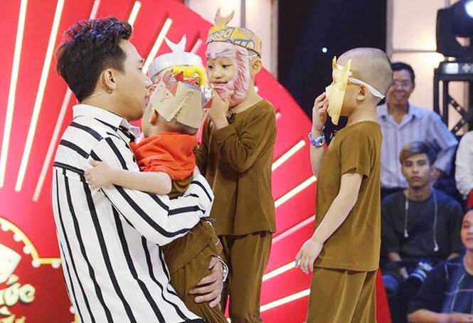 Trấn Thành không giấu được niềm xúc động trước hoàn cảnh của dàn thí sinh nhí. Ảnh: BTC