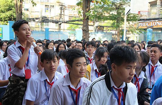 Học sinh lớp 9 Trường THCS Nguyễn Gia Thiều (Q.Tân Bình, TP.HCM) đặt câu hỏi tại chương trình