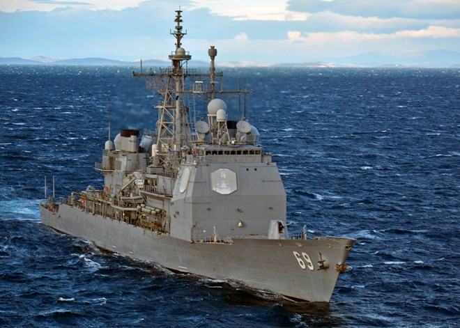 Tàu khu trục trang bị tên lửa dẫn đường USS Vicksburg của Mỹ tham gia tập trận tại Biển Đen. (Nguồn: AFP)