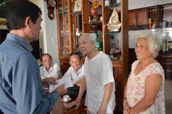 Ông Nguyn Thanh Tu– Phó Chủ tịch UBND huyện Gò Công Tây tặng quà cho gia đình ông Nguyễn Chí Thân