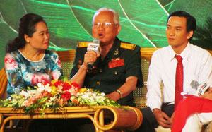 Đại tá Đinh Văn Huệ (giữa), bà Nguyễn Thị Lệ, anh Trần Quốc Tuyên trong mục giao lưu tại chương trình
