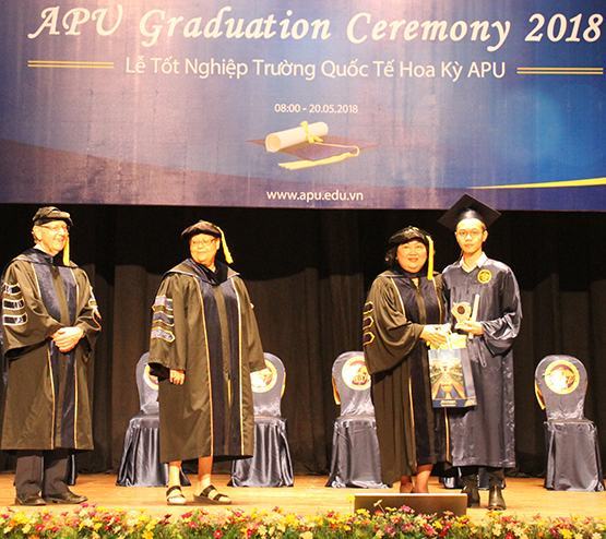 Trường Quốc tế APU (TP.HCM) vừa tổ chức lễ tốt nghiệp và khen thưởng cho học sinh xuất sắc năm học 2017-2018. Theo đó, năm học này trường có 92 học sinh đạt thành tích xuất sắc trong học tập được tặng học bổng lên đến 90 tỷ đồng. Trong buổi lễ, nhà trường công bố tặng 100% học bổng trường ĐH Mỹ tại Việt Nam cho học sinh tốt nghiệp tại APU, mức học bổng tùy vào thành tích đạt được. Được biết, với quan điểm lấy học sinh làm trung tâm, chú trọng rèn luyện đạo đức, nhân cách, tích cực tham gia các hoạt động hướng về cộng đồng, Trường Quốc tế APU đã là thành viên Viện Giáo dục Quốc tế tại Việt Nam, là trung tâm khảo thí của College Board (Hiệp hội các trường ĐH và CĐ tại Mỹ).