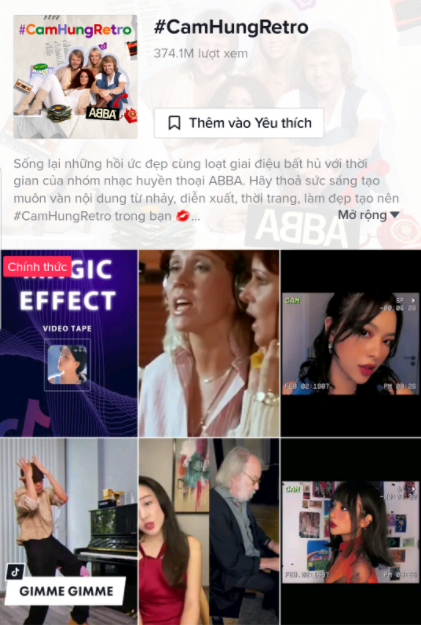 Xu hướng "cảm hứng retro" ngay lập tức được phổ biến trên TikTok Việt Nam với gần 400 triệu lượt xem và vô số nội dung sáng tạo đầy hoài niệm với những ký ức khó quên về giai đoạn thập niên 80, 90 cùng các xu hướng âm nhạc, thời trang kinh điển mà bất cứ thế hệ nào cũng nên biết. Các bạn trẻ sử dụng hiệu ứng ảnh phim retro, thử trang điểm như thời của mẹ, phối đồ như những ngày ba còn trẻ…
