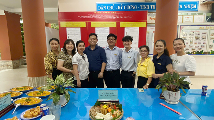 Nhân dịp này, nhà trường cũng tổ chức nhiều hoạt động giao lưu vui tươi, trong đó nổi bật là hội thi nấu ăn giữa các tổ chuyên môn. Đây là hoạt động được các thầy cô hưởng ứng nhiệt tình bởi không chỉ mang lại tiếng cười mà còn tạo cơ hội để các thành viên trong nhà trường thể hiện sự khéo léo, sáng tạo và tinh thần đồng đội.