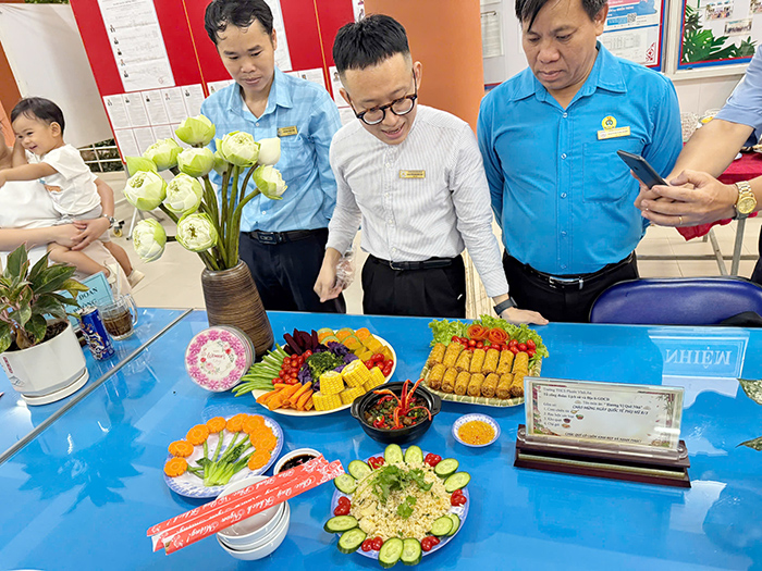 Điều thú vị là bên cạnh sự khéo léo của các cô giáo, nhiều thầy giáo cũng nhiệt tình tham gia vào gian bếp như thầy Nguyễn Thái Hùng – Chủ tịch Công đoàn, thầy Mai Hoàng Chánh… góp phần làm cho hội thi thêm phần sôi động. Những khoảnh khắc các thầy cô cùng nhau nấu nướng, trao đổi kinh nghiệm hay cùng cười vui trước những tình huống bất ngờ đã tạo nên một bầu không khí gần gũi, thân tình.