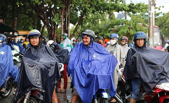 | Phụ huynh và thí sinh vất vả ra về dưới trời mưa |