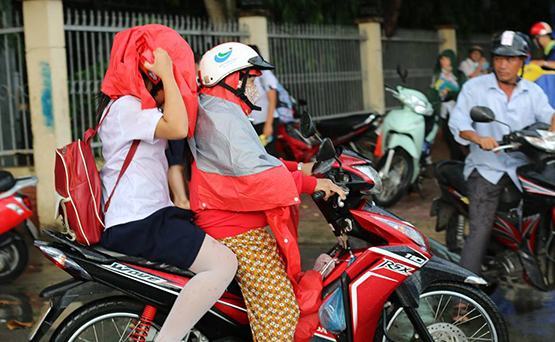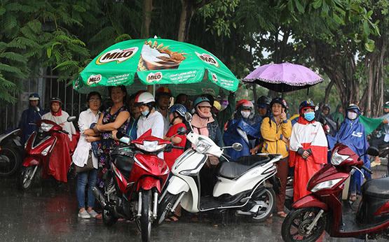 Chiều 25-6, khi thời gian làm bài thi Toán sắp sửa kết thúc thì một số địa phương ở TP.HCM mưa lớn bất ngờ. Không còn cách nào khác, nhiều phụ huynh đội mưa tiếp tục đợi con em . Ông Trần Văn Minh (48 tuổi, ngụ quận Thủ Đức) cho biết, thay vì vào quán nước ngay gần đó thì ông chọn cách “đội” mưa để đợi đón con. “Có lẽ đề thi Toán năm nay sẽ rất khó, nên trong phòng thi các cháu rất áp lực. Ở bên ngoài tôi cũng lo lắng không kém. Việc đợi con dưới mưa cũng là cách chia sẻ khó khăn với con”.