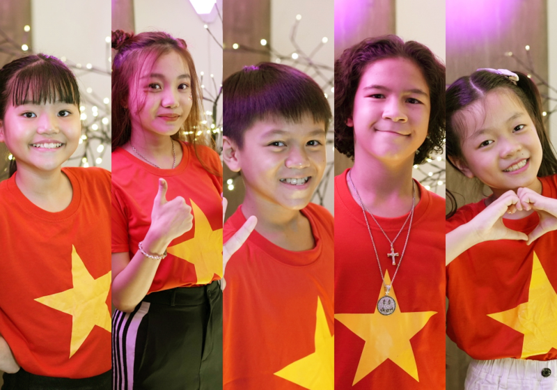 Các ca sĩ nhí thể hiện ca khúc Cố lên, cố lên của nhạc sĩ Dương Khắc Linh