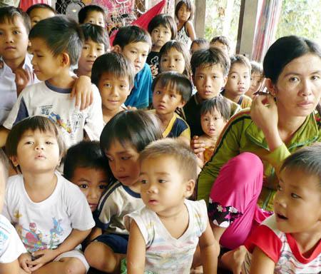 Nhiều phụ huynh đưa trẻ nhỏ đến các nhà trẻ để an tâm hơn khi đi mưu sinh trong mùa lũ. (Ảnh: CTV)
