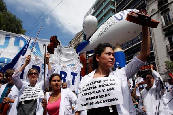 Hàng ngàn giáo viên đã xuống đường ở Buenos Aires, Argentina vào ngày 6-3-2017, trong cuộc đình công quốc gia kéo dài 2 ngày đòi tăng lương để bù lại lạm phát tăng cao trong năm ngoái. Ảnh: REUTERS