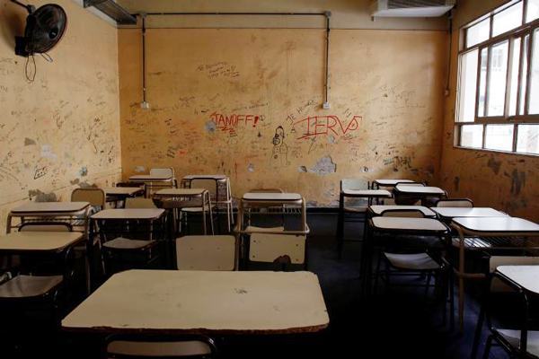 Một lớp học không có học sinh tại một trường công lập khi hàng ngàn giáo viên xuống đường, đình công đòi tăng lương ở Buenos Aires, Argentina, ngày 6-3-2017. Ảnh: REUTERS