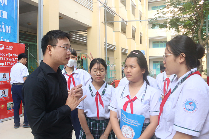 Chuyên gia Tiêu Minh Sơn trao đổi thông tin với các em học sinh về phương pháp vượt qua áp lực mùa thi