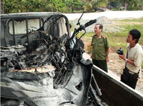Sau khi bị lập biên bản, tổ tuần tra ra quyết định tạm giữ 3 phương tiện và đưa lên xe đặc chủng mang BKS 65E-1167 để đưa về kho quản lý phương tiện. Khi xe đặc chủng lưu thông từ hướng quận Cái Răng về huyện Phong Điền và đến gần cầu Rạch Chuối (ấp Thị Tứ, thị trấn Phong Điền) khoảng 50m thì người dân đi đường phát hiện 3 xe máy đang bốc cháy và báo cho tài xế biết. Biết tin, tài xế cho dừng xe lại và cùng người dân tham gia chữa cháy.