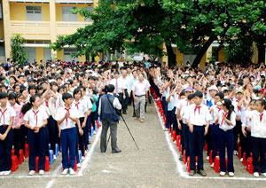 Sắp xếp các em học sinh đứng ngay thẳng (ảnh) trong các buổi lễ không phải là công việc của hiệu trưởng (ảnh mang tính minh họa). Ảnh: T.L |