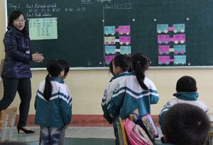 Cô Phạm Thị Đào – giáo viên chủ nhiệm lớp 1A Trường Tiểu học Xuân Ái hướng dẫn học sinh trong tiết luyện tập toán |