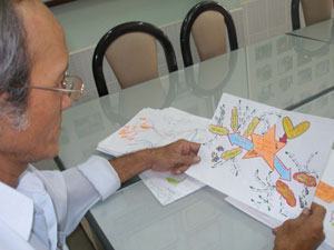 Sau đó thầy Hùng tìm đọc sách của ông Tony Buzan viết về BĐTD, rồi từ năm 2008, thầy bắt đầu áp dụng cho HS. “Trước tiên, tôi dành một tiết nói về BĐTD, rồi chỉ cho HS biết cách “lọc” thông tin chính. Một bài trong sách giáo khoa có thể dài 8-10 trang nhưng các em chỉ cần cô đọng lại trên 1 trang giấy A4", thầy Hùng cho biết.