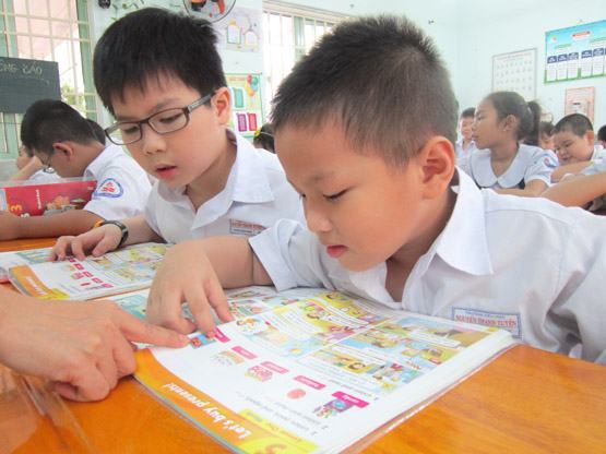 Học sinh tiểu học tại TP.HCM trong giờ học tiếng Anh. Ảnh: N.Trinh