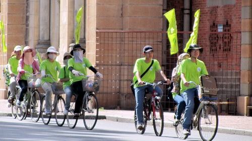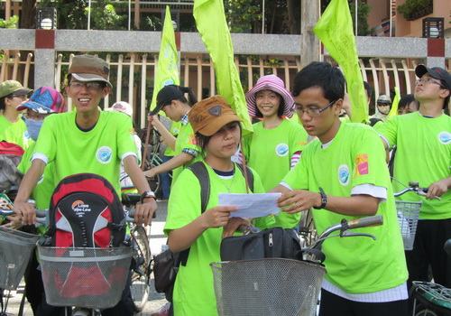 Chiều 4-6, xuất phát từ nhà thờ Đức Bà (Q.1, TP.HCM), khoảng 150 sinh viên trong màu áo xanh tình nguyện đã đạp xe qua các tuyến đường lớn của các quận Q.1, Q.3. Q.Bình Thạnh… mang theo thông điệp "Sử dụng sản phẩm xanh vì sức khỏe của chính bạn".