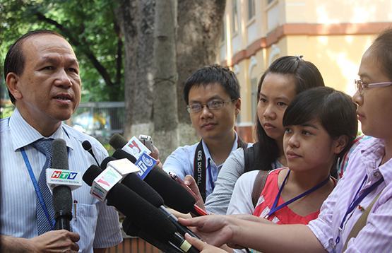 | Phóng viên đang tác nghiệp tại kỳ thi THPT quốc gia năm trước. Ảnh: M.Tâm |