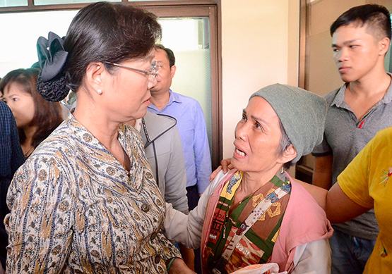 Chủ tịch HĐND TP.HCM Nguyễn Thị Quyết Tâm trao đổi với người dân Thủ Thiêm bên lề buổi tiếp công dân. Ảnh: L.Giang