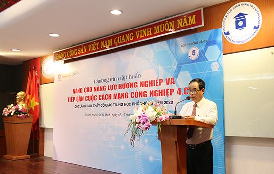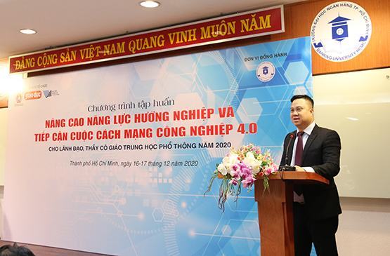 Sáng 16-12, tại Trường ĐH Ngân hàng TP.HCM, chương trình tập huấn hướng nghiệp cho đội ngũ cán bộ, giáo viên THPT tại TP.HCM năm 2020 với chủ đề “Nâng cao năng lực hướng nghiệp và tiếp cận cuộc cách mạng công nghiệp 4.0” do Báo Giáo Dục TP.HCM tổ chức đã chính thức khai mạc. Ngay trong ngày khai mạc, chương trình đã trang bị kỹ năng, kiến thức hướng nghiệp cho hơn 200 cán bộ, giáo viên cốt cán đến từ các trường trung học ở 12 quận (từ Q.1 đến Q.12)