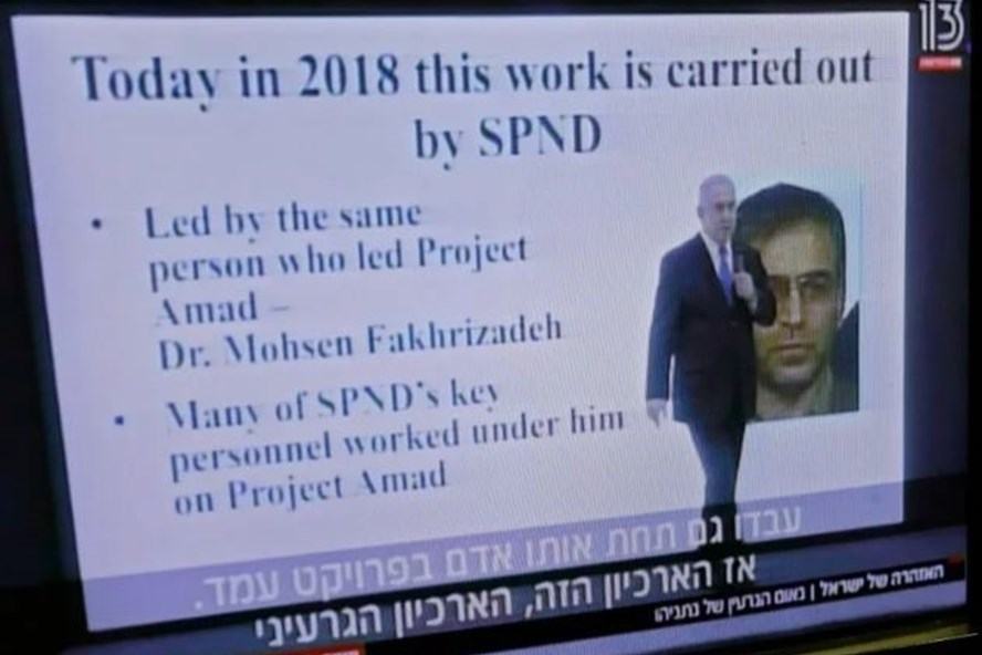 Thủ tướng Israel Benjamin Netanyahu nhắc tới nhà khoa học Mohsen Fakhrizadeh trong bài thuyết trình về chương trình hạt nhân Iran.