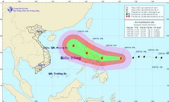 Hồi 7 giờ ngày 14/7, vị trí tâm bão ở vào khoảng 13,2 độ Vĩ Bắc; 130,5 độ Kinh Đông, cách đảo Luzon (Philippines) khoảng 1000km về phía Đông Đông Nam. Sức gió mạnh nhất ở vùng gần tâm bão mạnh cấp 10 (tức là 89 đến 102km một giờ), giật cấp 11, cấp 12.
