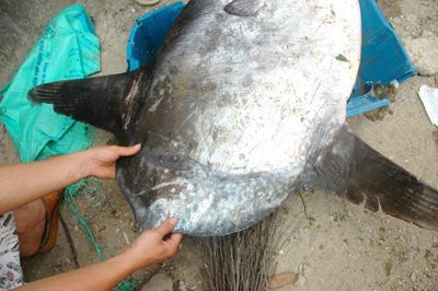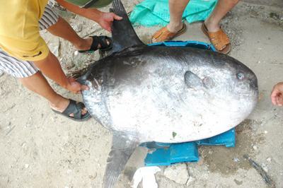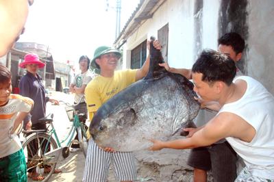 Con cá lạ nặng 30,5kg, dài khoảng 80cm, được một ngư dân xã Quỳnh Lập đánh bắt được ở vùng biển Đông và đưa về bờ hôm qua. Con cá có hình thù rất kỳ lạ, mình dẹt, bản tròn, đuôi ngắn, không có vảy; mang, mắt, miệng đều rất nhỏ nhưng hai vây ở phần lưng và bụng lại khá dài (khoảng 30cm).