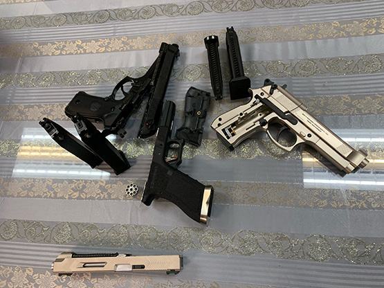3 khẩu súng và 4 hộp tiếp đạn được cơ quan chức năng phát hiện trong hành lý của đối tượng
