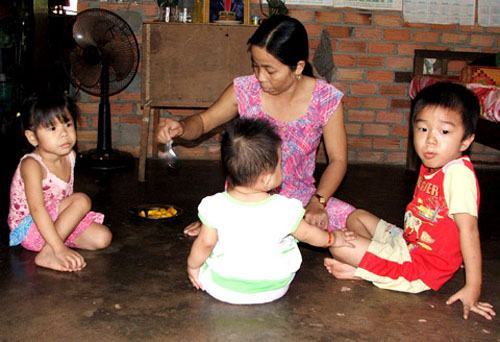 Chúng tôi tỏ ra ngạc nhiên, ngơ ngác trước một căn nhà qúa tồi tàn, tối tăm được dùng làm nơi giữ trẻ. Chui qua lớp vải vào bên trong mới biết có 4 đứa trẻ (1-2 tuổi) nằm lăn lóc trong một góc phòng tối tăm. Mặc dù trời giữa trưa nắng gắt, phòng trọ đang bật đèn nhưng nhìn thấy lờ mờ 3 cháu nhỏ nằm co ro dưới sàn nhà ngủ thiếp đi.