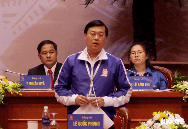 Bí thư thứ nhất T.Ư Đoàn Lê Quốc Phong điều hành, lấy ý kiến đại biểu bầu ban chấp hành Trung ương Đoàn khóa XI – Ảnh: CHÍ TUỆ