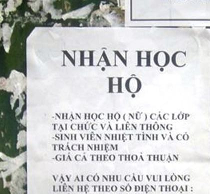 “Đảm bảo việc học đúng thời gian, đủ số buổi, đáp ứng đúng yêu cầu của các bạn. Giá cả thỏa thuận. Hãy liên hệ với chúng tôi theo số điện thoại…”. Những dòng quảng cáo dịch vụ học thuê này được công khai trên các trang web, các trang mạng xã hội, thậm chí được dán ở các điểm công cộng hay nơi tập trung đông sinh viên.
