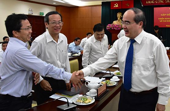 Chủ trì buổi gặp gỡ có các đồng chí: Nguyễn Thiện Nhân – Bí thư Thành ủy; Tất Thành Cang – Phó Bí thư Thường trực Thành ủy; Nguyễn Thành Phong – Chủ tịch UBND TP; Nguyễn Thị Quyết Tâm – Chủ tịch HĐND TP…